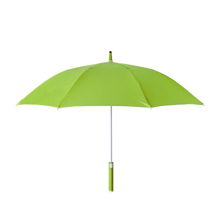 105cm diameter umbrella in 190T RPET polyester material. Automatic opening, with windproof mechanism, velcro fastening and fibreglass ribs. Straight handle in soft ABS with rubber touch, in matching colour with the fabric. With RPET label and available in a wide range of colours.RPET material is made from recycled plastic, thus promoting the reuse of plastic waste and helping the sustainability of the planet.