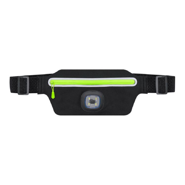 Fanny pack made of durable polyester. Main compartment with reflective zipper closure. On the front it includes a flashlight with 3 light intensities. 300mAh battery, with charging via USB cable. With buckle closure and adjustable strap, specially designed for sports and leisure activities. (black color)