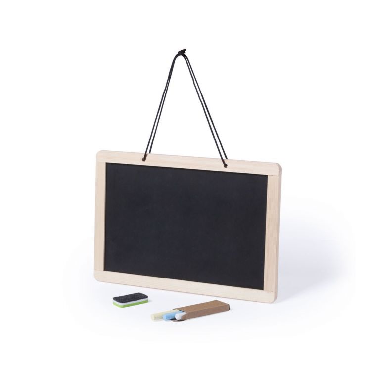 Double-sided hanging board. Traditional chalkboard on one side with 3 chalks included + marker board on the other side -marker included-. With double-sided eraser for chalk or marker pen. (neutral color)