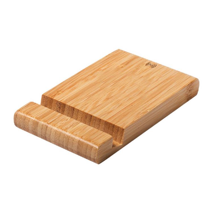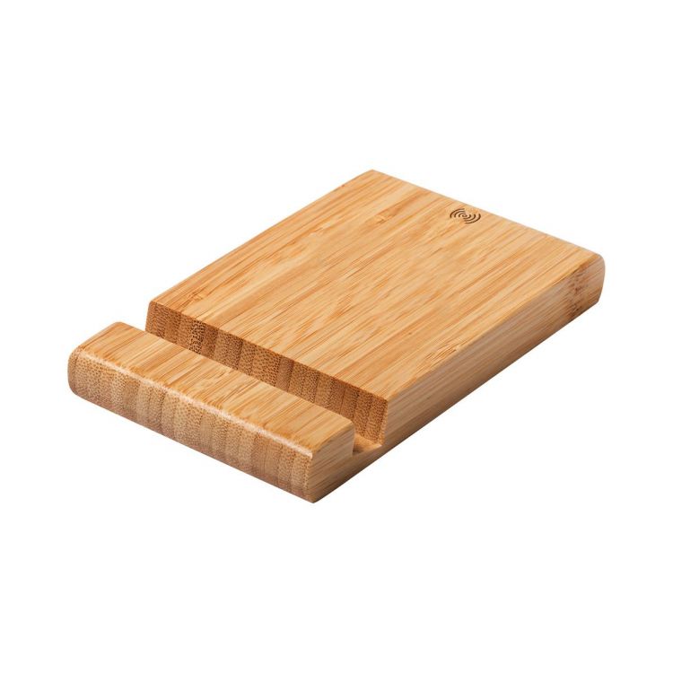 Bamboo desk mobile holder with built-in wireless fast charger (15W). Including USB charger cable
