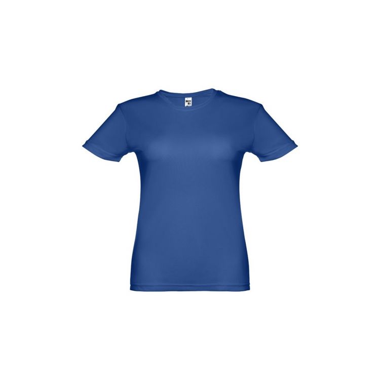 Technical slightly fitted T-shirt with short sleeves for women in 100% polyester jersey knit (130 g/m²). Regular fit, with comfortable and breathable fabric. Reinforced collar with jersey and double stitched sleeves and hemline. Product in royal blue color