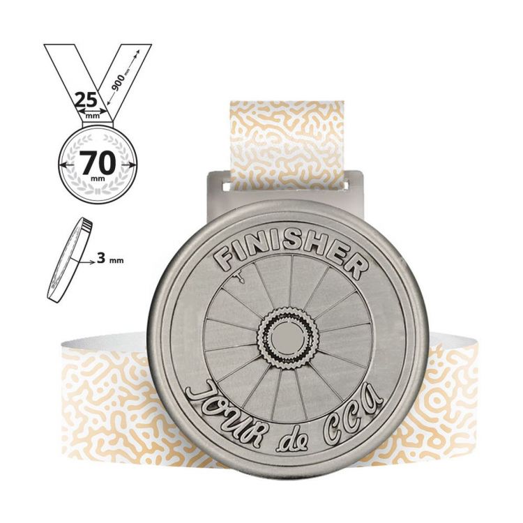 Round medal with a fully customisable 25x900 mm lanyard included. The medal is manufactured with a 3D effect mould specially created to the customer's design. Thanks to this processing we can obtain a unique, three-dimensional product, cast within the mould. The medals are available in three basic finishes (gold, silver and bronze) at the same price.