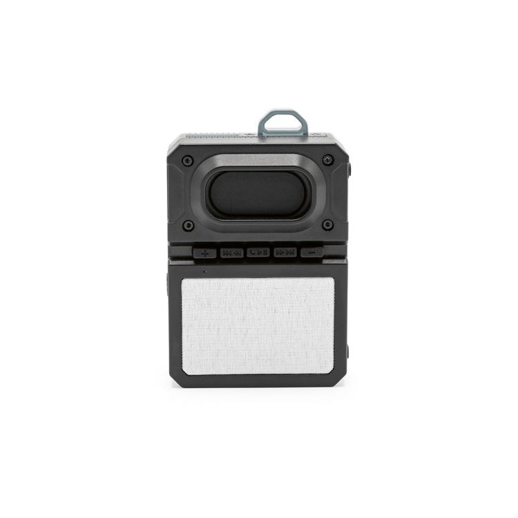Meet Soundo, the extraordinary 3W speaker with its built-in subwoofer and 800mAh battery. Made from 100% Recycled ABS plastic the Soundo delivers 6 hours of playtime and remarkable audio quality that defies its compact size. Charge in 2 hours. The carry strap lets you clip it onto bags and the detachable grill enables full colour imprints. Seamless connection between devices through the TWC system. Presented in individual kraft boxes for a clean, eco-friendly touch., in black color